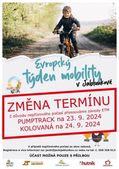 Závody pro děti z MŠ a ZŠ na kolech a odrážedlech v rámci Evropského týdne mobility.
