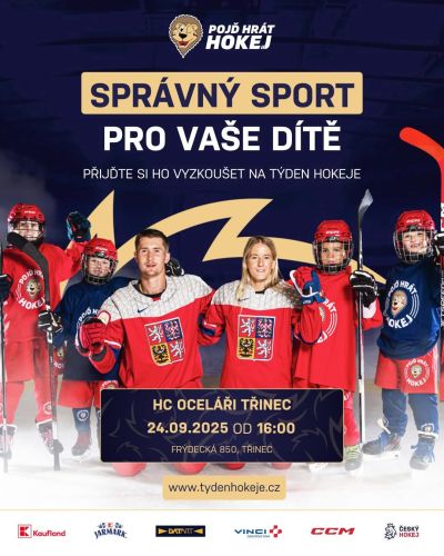 Ve středu 24. září 2025 od 16:00 budou mít všechny děti od 4 do 8 let bez rozdílu dovednosti bruslení jedinečnou možnost vyzkoušet si zdarma, jaké to je být hokejistou nebo hokejistkou. Oceláři ve spolupráci s Českým hokejem pořádají v Mini WERK ARENĚ v rámci Týdne hokeje náborovou akci. Kromě zážitku v podobě prvních krůčků na ledě si každé dítě navíc s sebou domů odnese zajímavý hokejový dárek. Přijďte si vyzkoušet lední hokej a zažijte spoustu zábavy!