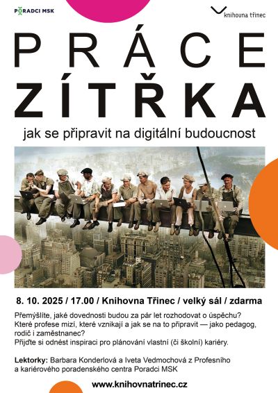 Přemýšlíte, jaké dovednosti budou za pár let rozhodovat o úspěchu? Které profese mizí, které vznikají a jak se na to připravit — jako pedagog, rodič i zaměstnanec? Přijďte si odnést inspiraci pro plánování vlastní (či školní) kariéry. Ve středu 8. 10. 2025 se bude v 17:00 ve velkém sále knihovny konat setkání s lektorkami z Profesního a kariérového poradenského centra Poradci MSK – Barborou Konderlovou a Ivetou Vedmochovou.