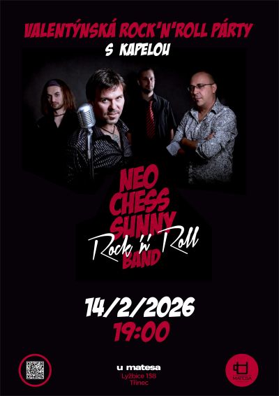 Předprodej vstupenek:https://www.smsticket.cz/vstupenky/65715-valentynsky-rock-n-roll-s-kapelou-neo-chess-sunny-r-n-r-band-u-matesa-trinec
