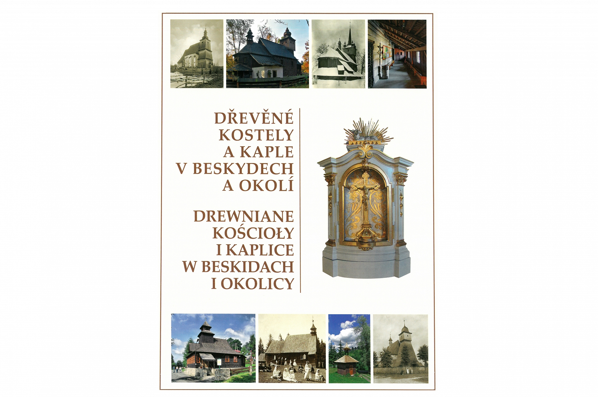 Publikace mapuje prostřednictvím téměř 700 mnohdy unikátních fotografií a další ikonografie z období let 1874-2009, dřevěné a polodřevěné sakrální stavby v Beskydech a okolí na území České a Polské republiky. Obsahuje 82 abecedně řazených kostelů a kaplí, včetně staveb zaniklých v průběhu 19. - 21. století. Text je v plném rozsahu přeložen do polského a anglického jazyka, doplněn výkladovým slovníkem, mapou a souřadnicemi GPS. Dřevěná sakrální architektura nám nabízí nostalgický obraz s nevšedním připomenutím lidových tradic a svým společenským významem patří mezi nejcennější kulturní památky nejen regionu, ale i obou států.